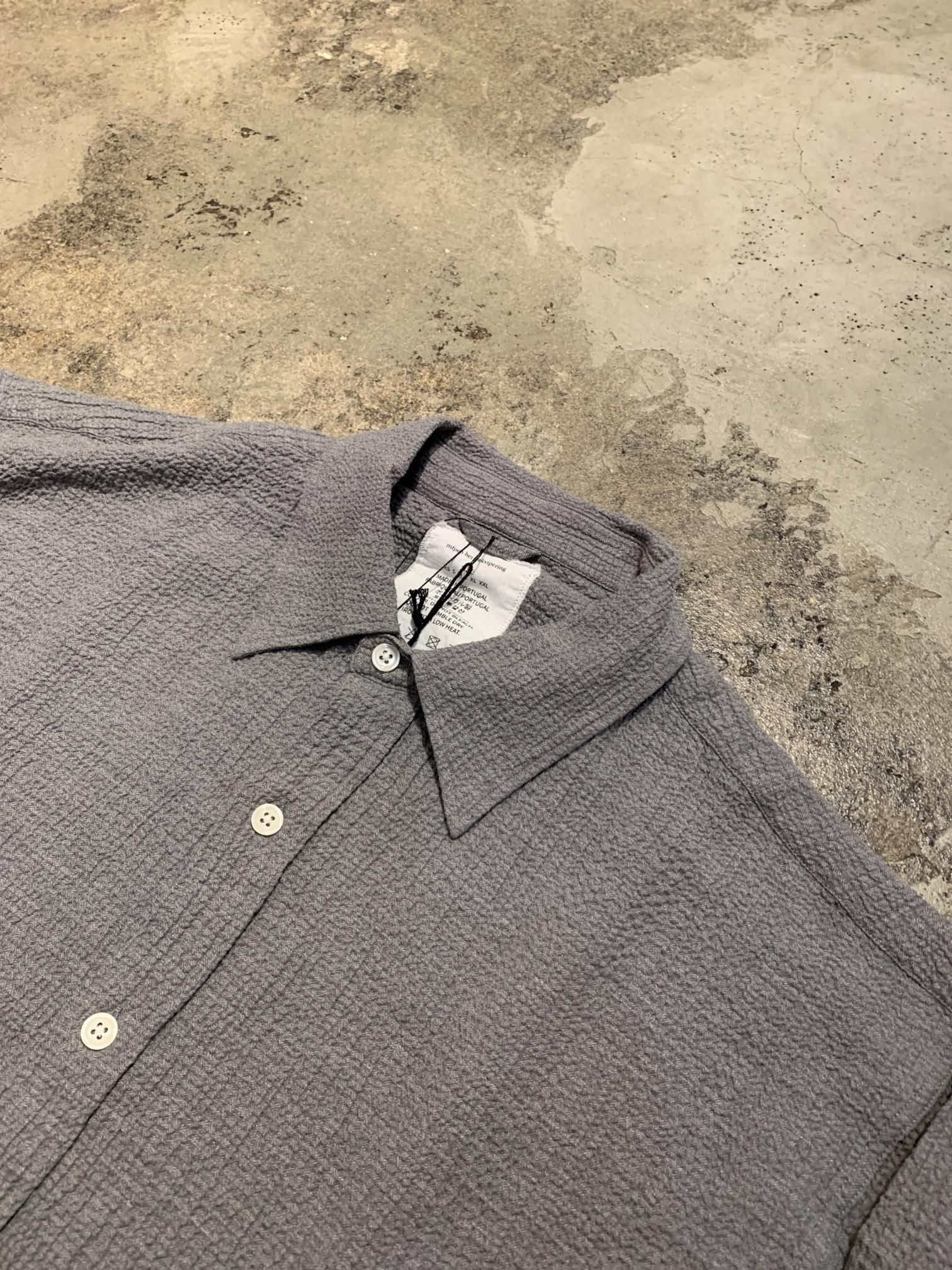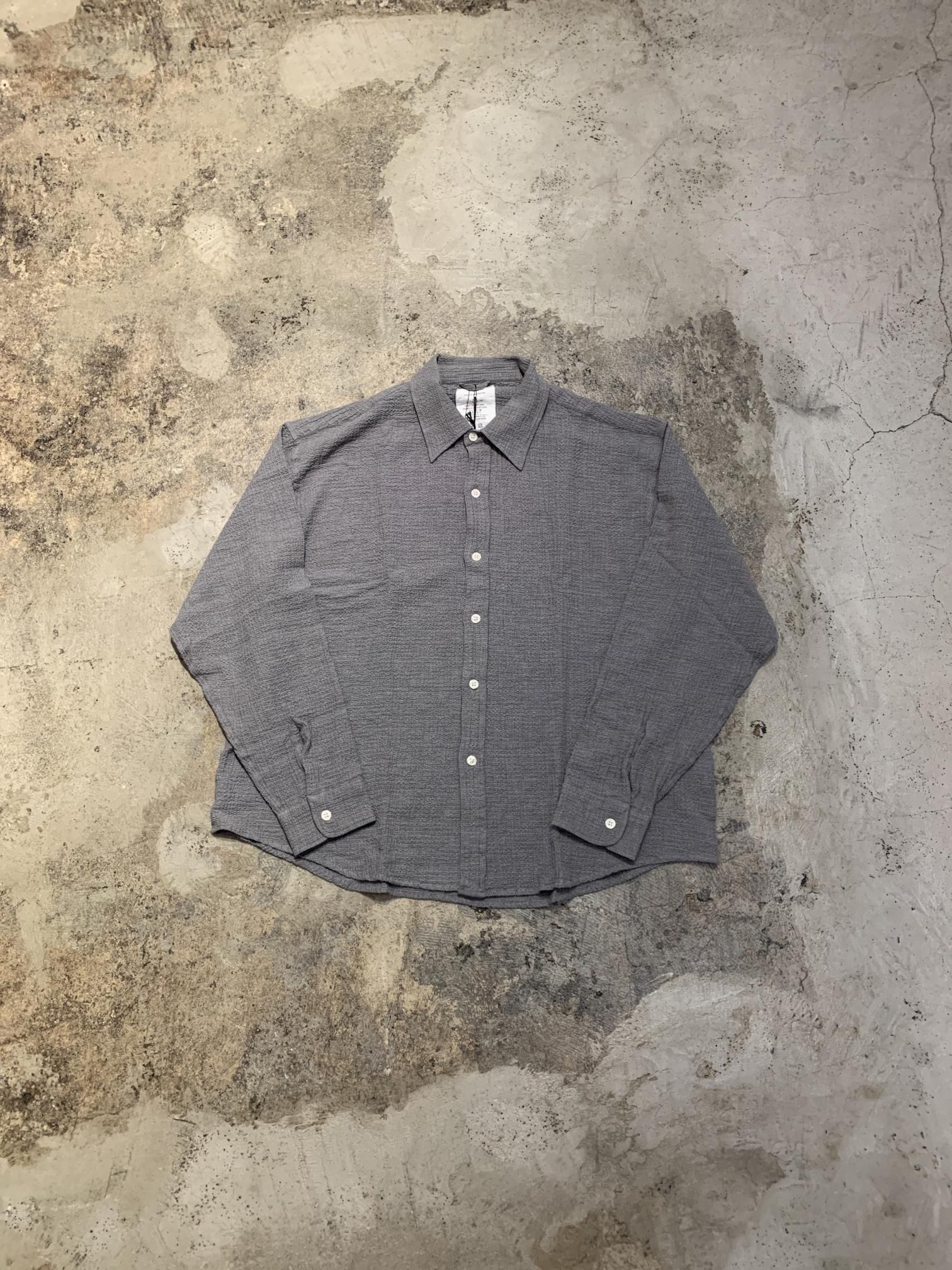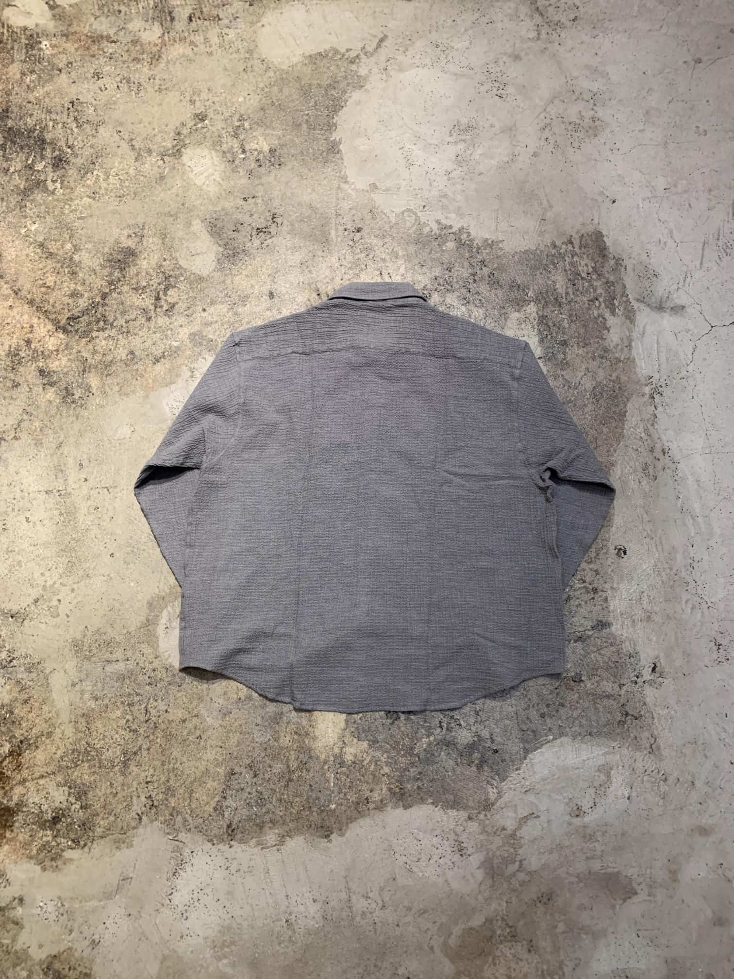 コットンとカシミアをブレンドした柔らかなシアサッカー生地を使用し、ミディアムグレーの斑点模様が特徴です。