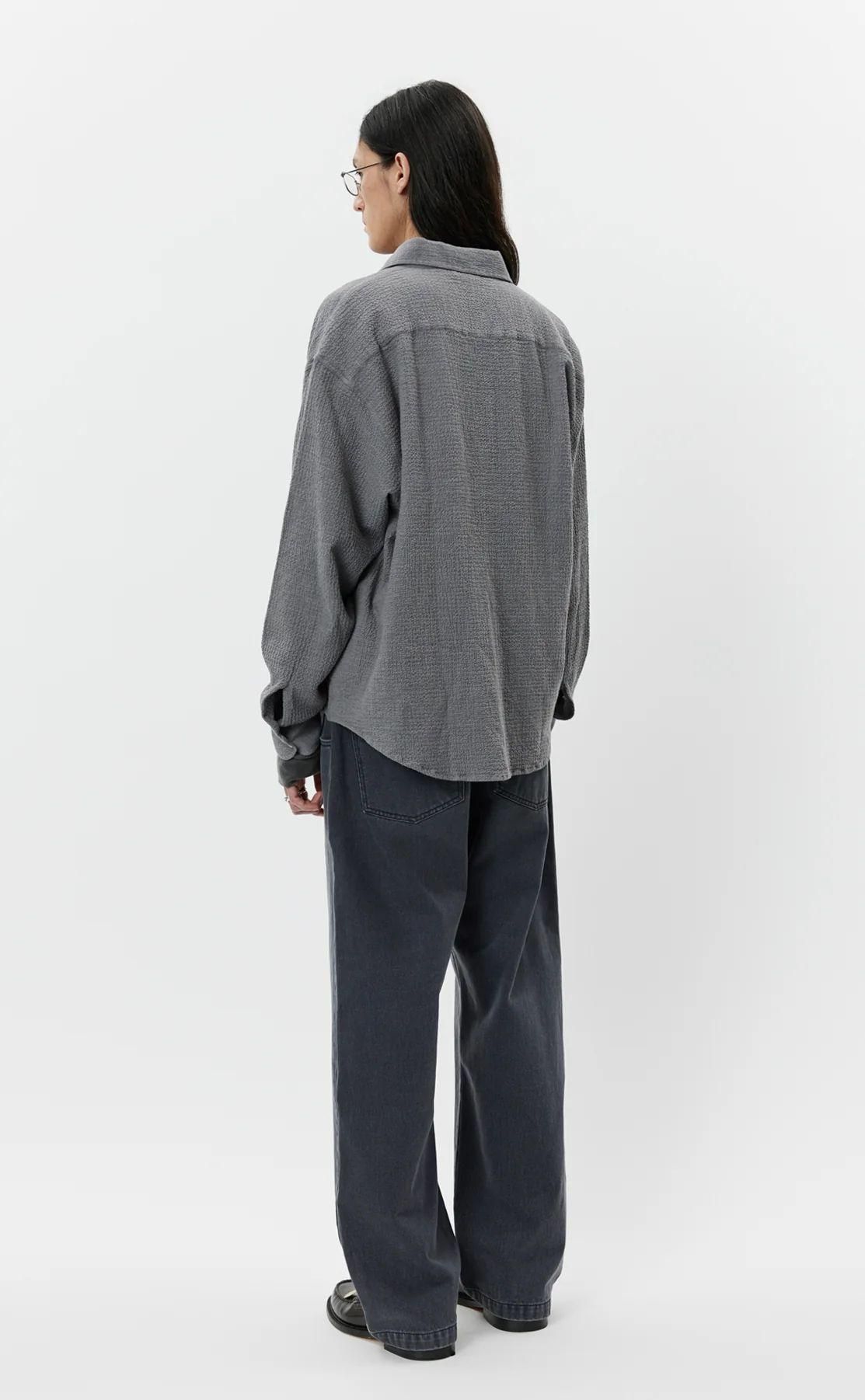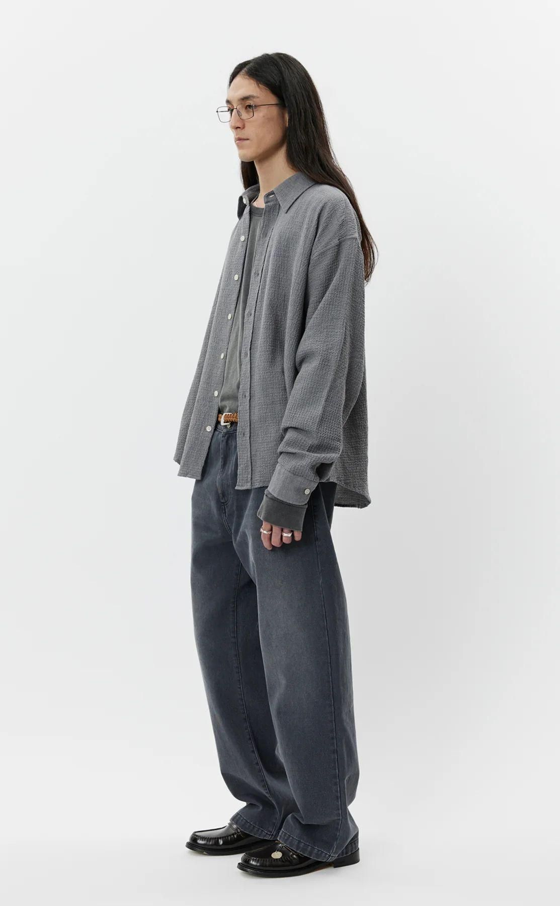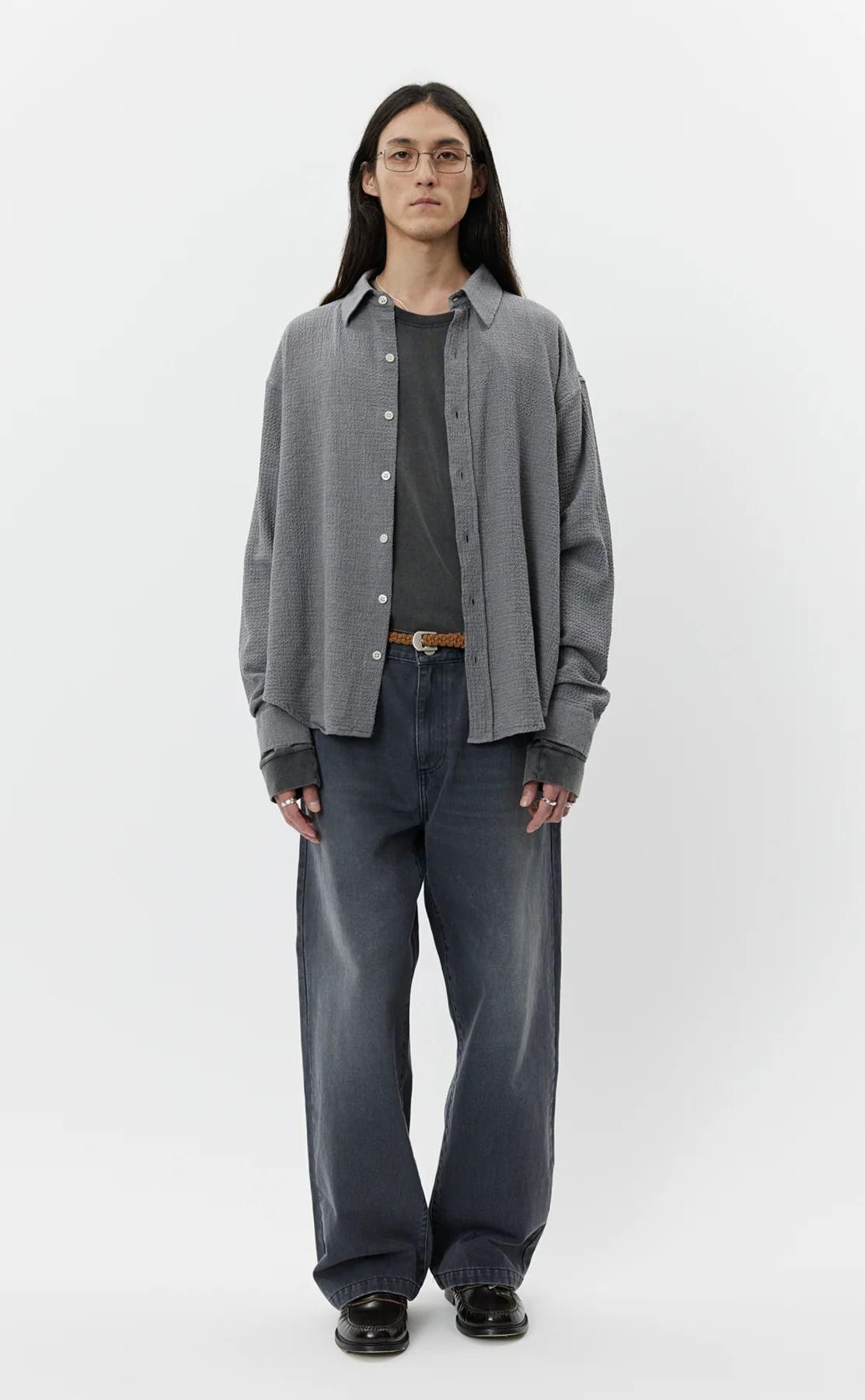 バケーションシャツは、ドロップショルダーとカーブした裾が特徴のゆったりとしたボックスフィット。