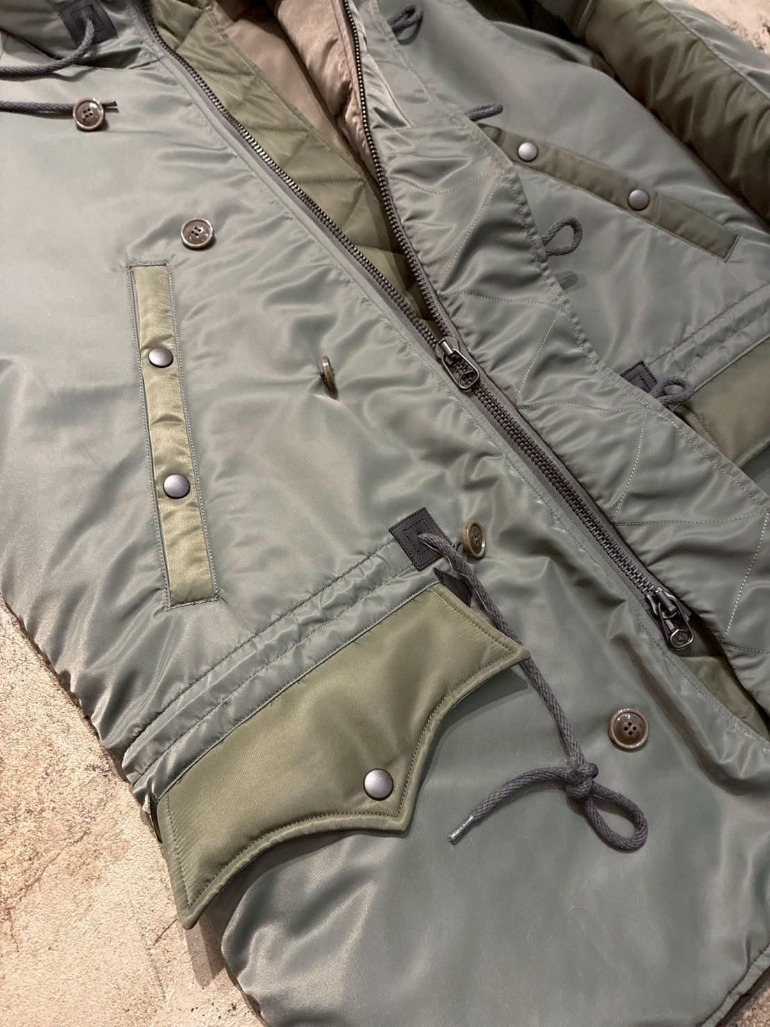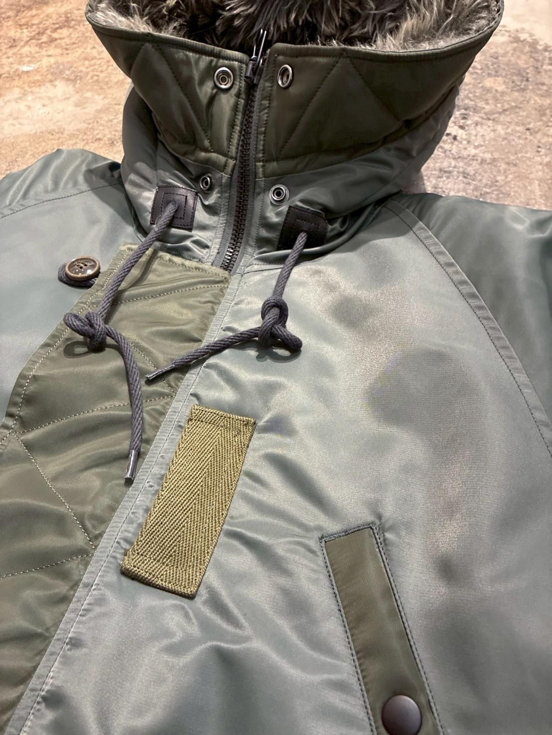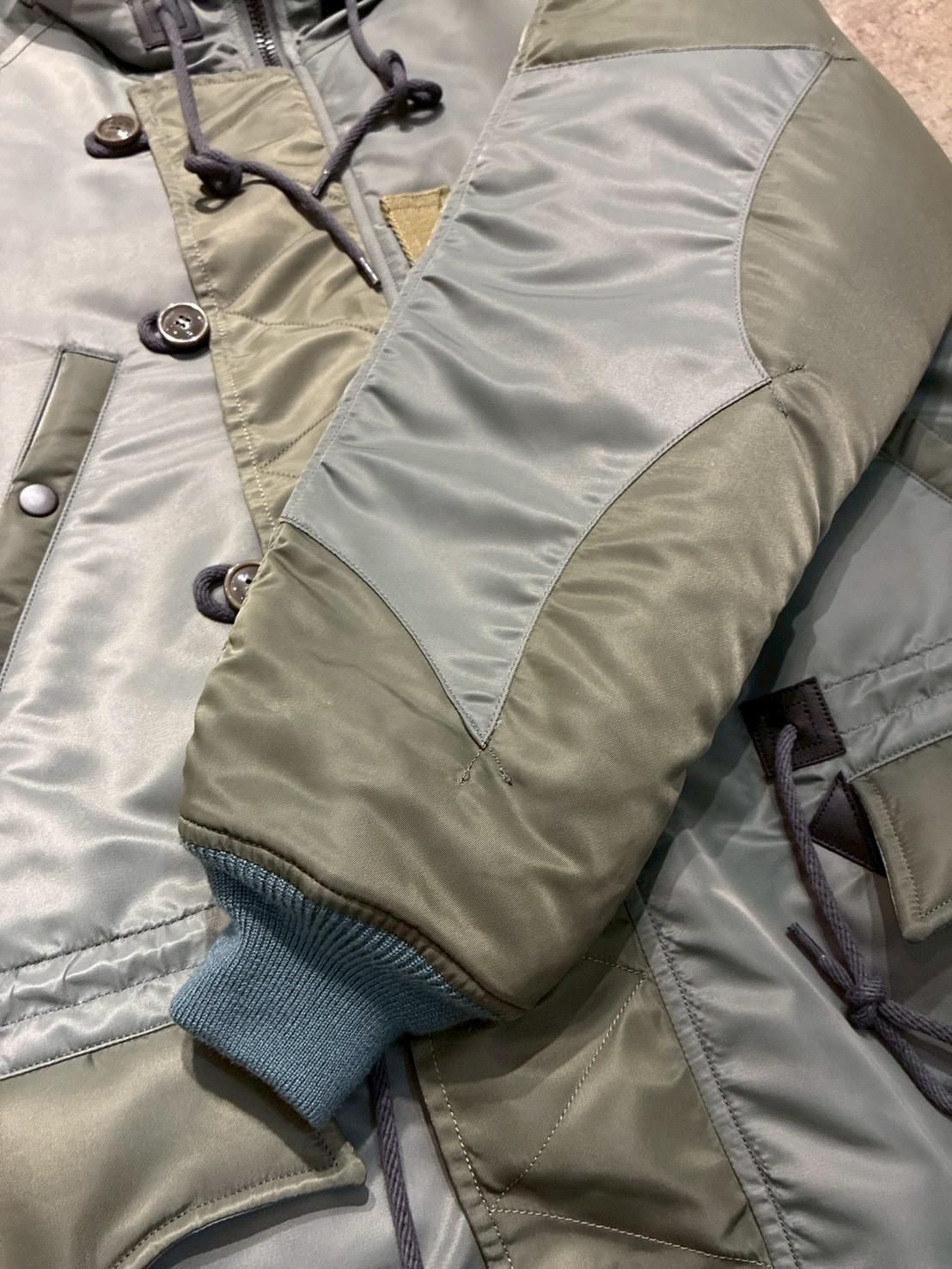 コンビ部分には当時のフライトジャケット実物からリプロした66ナイロンという見るスペック記載の原料を使用したなナイロンツイルを使用。