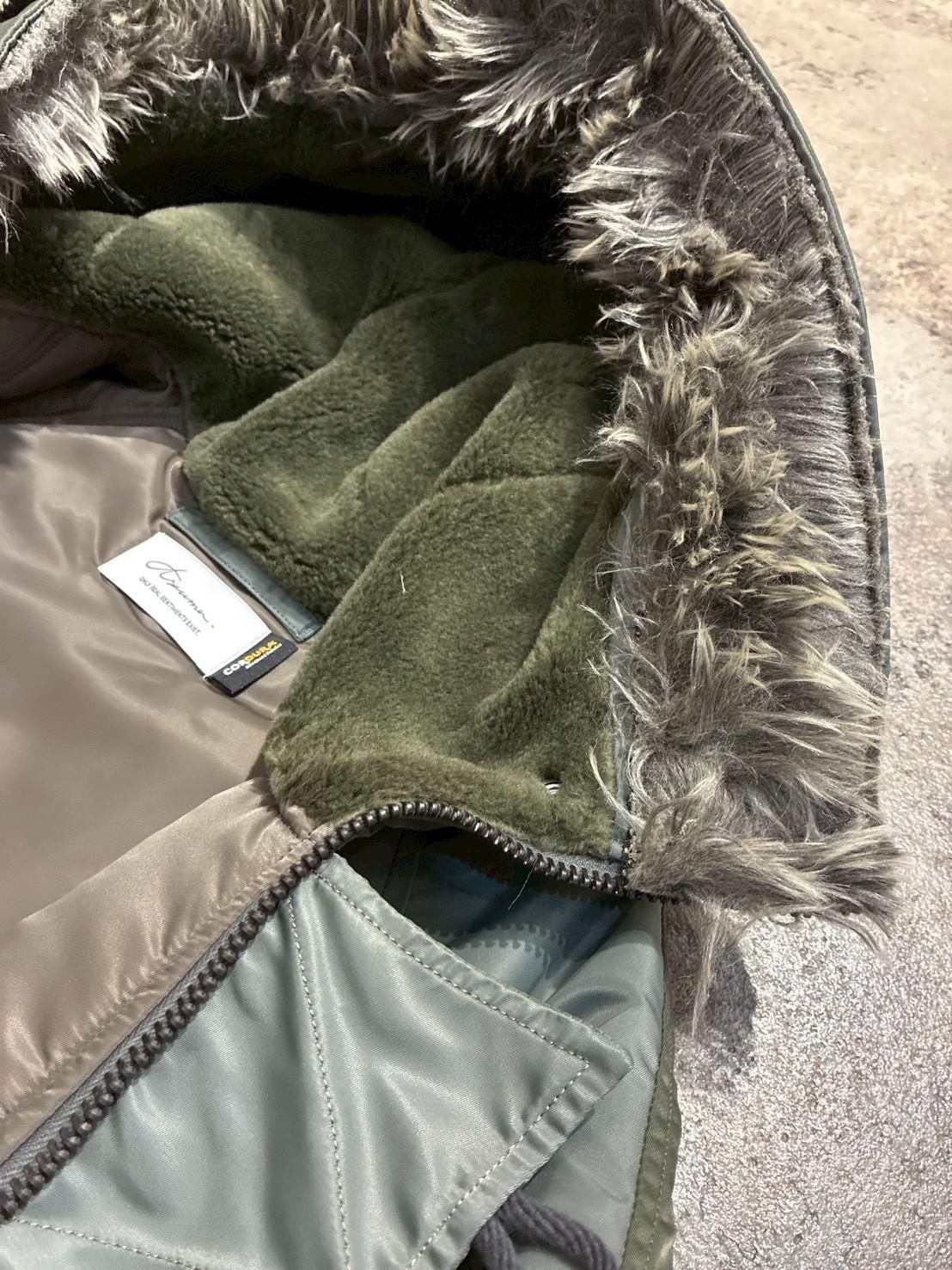 裏地には撥水加工を施した柔らかくふくらみのあるナイロンツイルを使用。