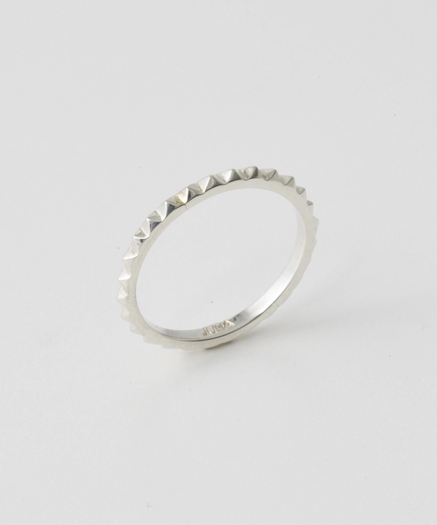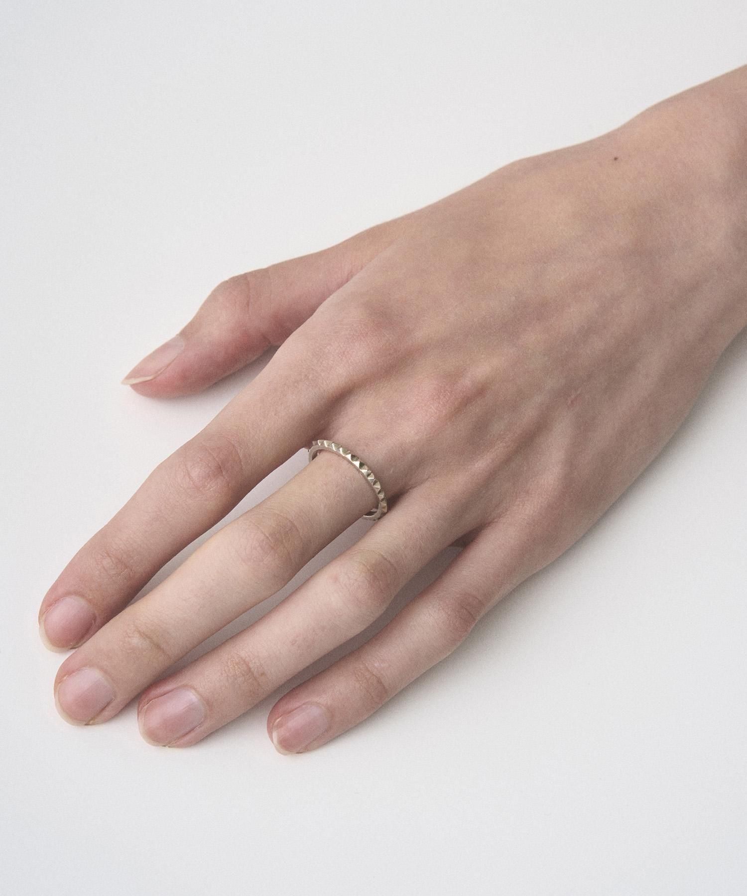 2mm幅に小さなスタッズをつくることで華奢なラインを表現したリングになります。