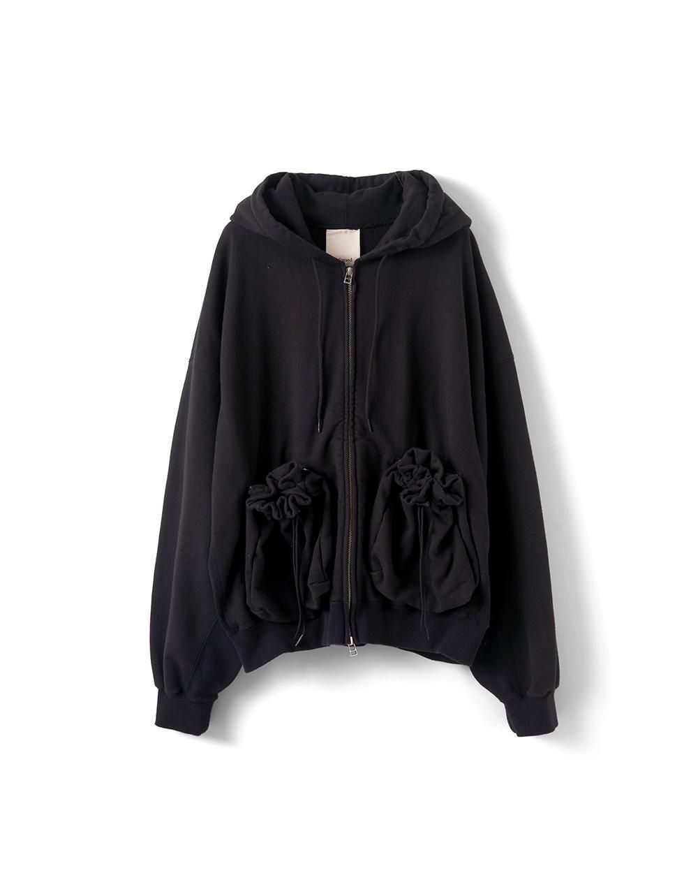 左官に使用するコテ袋をイメージした腰ポケットが特徴的なフルジップパーカー。